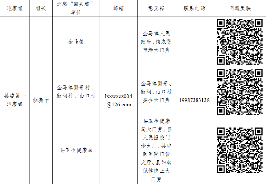 十四届县委第十四轮巡察“回头看”进驻一览表
