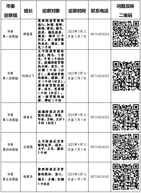 三届弥勒市委第十二轮巡察进驻情况及联系方式一览表