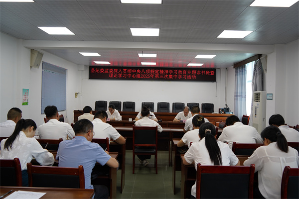 4月14日至15日,县纪委监委分个人自学和集中研讨两个阶段,举办深入贯彻中央八项规定精神学习教育专题读书班暨理论学习中心组2025年第三次集中学习。