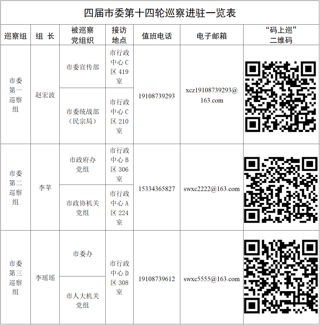附:四届市委第十四轮巡察进驻一览表