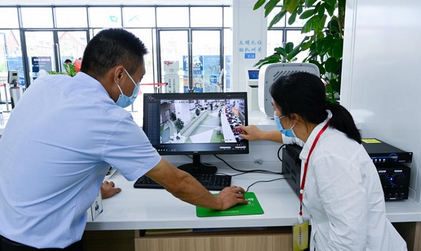 开远市纪委监委组成监督检查组,通过调阅市政务服务中心监控平台,查看各服务窗口工作情况,疏通优化营商环境“中梗阻”,让好作风、好政策直达群众身边。(开远市纪委监委 陆忠 摄)