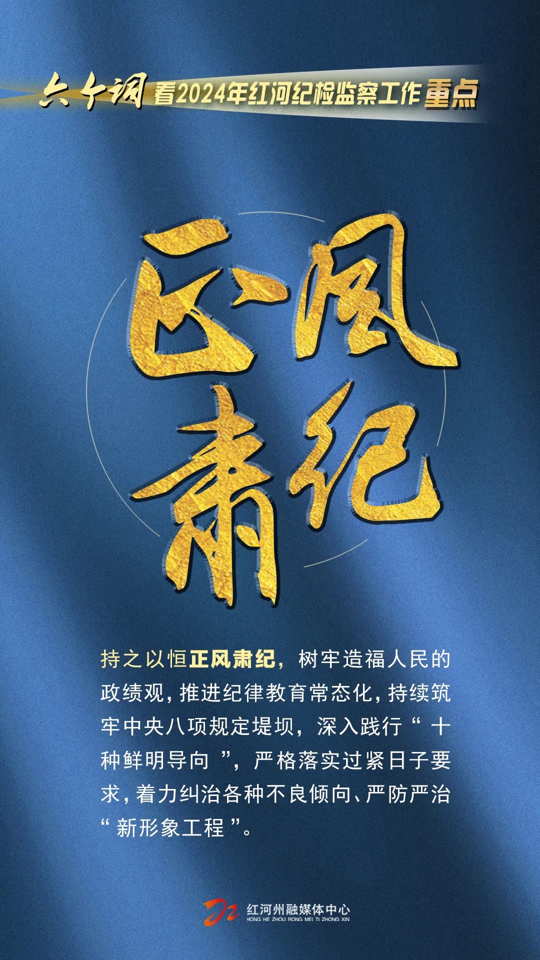 要坚持以习近平新时代中国特色社会主义思想为指导,全面贯彻落实党的二十大、二十届中央纪委三次全会精神,深入学习贯彻习近平总书记关于党的自我革命的重要思想和考察云南重要讲话精神,紧扣省委十一届五次全会、省纪委十一届四次全会及州委部署要求,坚决落实全面从严治党战略方针,深刻领悟“两个确立”的决定性意义,自觉增强“四个意识”、坚定“四个自信”、做到“两个维护”,坚持稳中求进工作总基调,巩固拓展主题教育和教育整顿成果,忠诚履行党章和宪法赋予的职责,推动健全全面从严治党体系,提升腐败治理能力,纵深推进“清廉云南”建设红河实践,纵深推进正风肃纪反腐,纵深推进新征程纪检监察工作高质量发展,为谱写好中国式现代化红河实践新篇章提供坚强组织纪律保障。