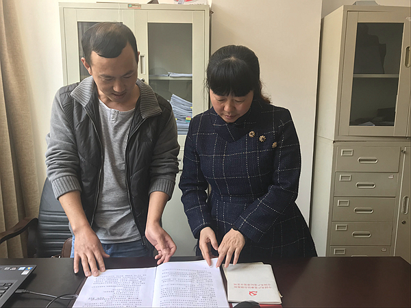 宋绣美(右)指导乡镇纪检干部审理业务