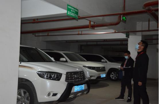 开远市纪委监委监督检查组到公务用车保障中心停车场实地查看公务车辆入库等情况,严防出现公车私用等情况。(蔡琴 摄)