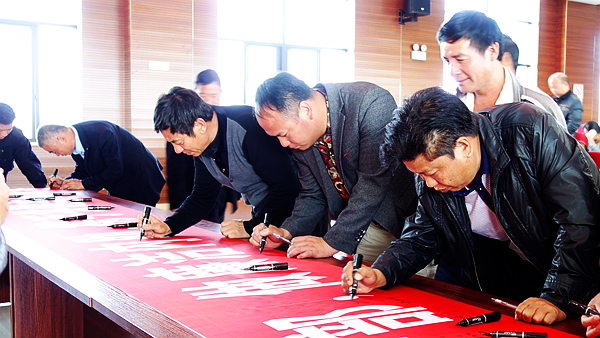 与会的268名干部及家属在“ 当清正干部,做廉洁内助,携手共建幸福家庭”的横幅上签字,许下了自己的“廉洁”承诺。(杨婷婷)