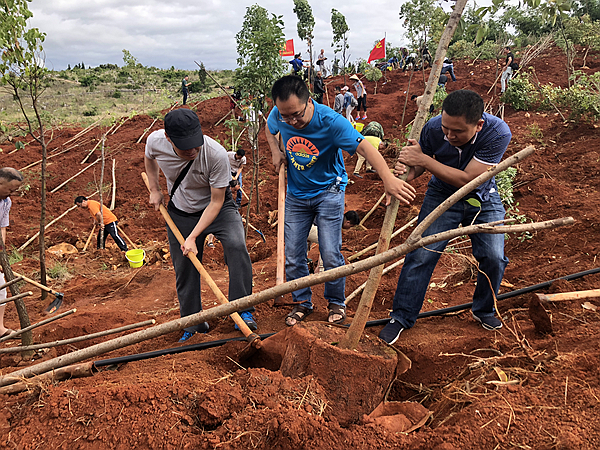 5月30日,蒙自市细雨绵绵,道路泥泞,但参加义务植树活动的红河州纪委监委机关干部们仍然准时达到植树点,参加州级机关义务植树活动。