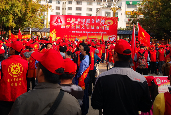 3月5日,是毛泽东等老一辈革命家号召“向雷锋同志学习”55周年纪念日。为继承弘扬雷锋精神,广泛宣传雷锋精神的时代意义,搭建一个实践群众路线的志愿服务平台,进一步转变工作作风,密切党群、干群关系,弘扬“奉献、友爱、互助、进步”的志愿精神,红河州纪委、蒙自市纪委共同组织20余名志愿者参与了蒙自市2018年学雷锋志愿服务系列活动。